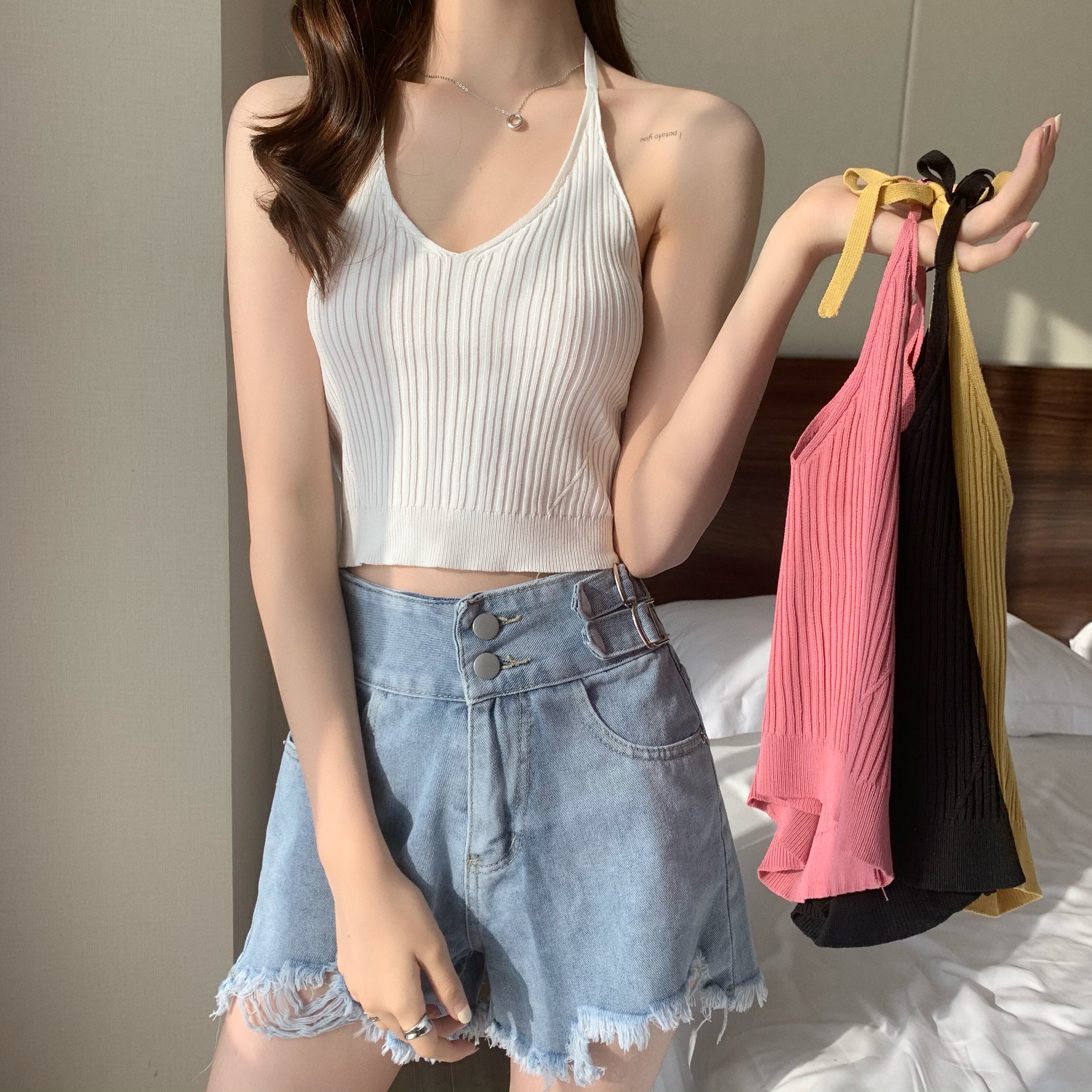夏季新款无袖设计款吊带露背挂脖背心针织上衣女性感包邮热门设计联盟服务商