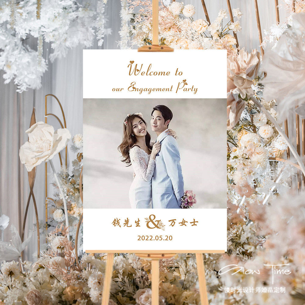 婚礼结婚照片订婚迎宾牌定制中式结婚水牌欢迎牌酒店门口布置牌子热门设计联盟服务商