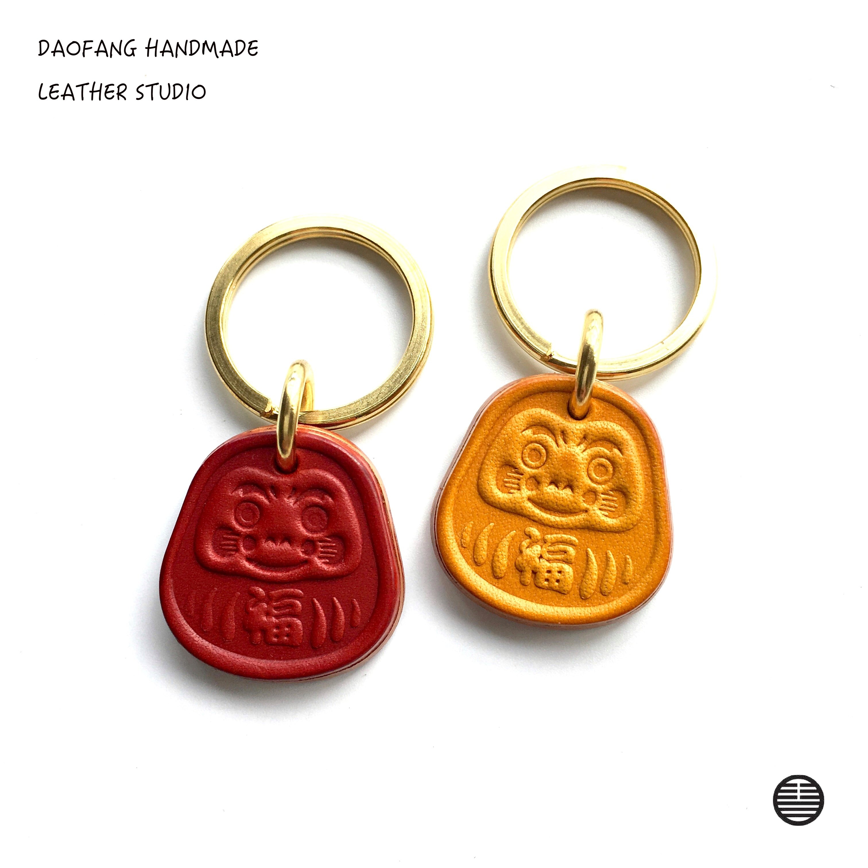 车钥匙挂件牛皮手工迷你熊本达摩平安黑红可爱卡通小众简约钥匙扣热门设计联盟服务商