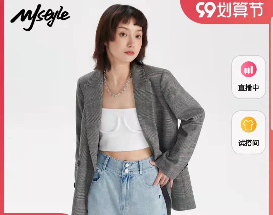 MJstyle2021年秋季新品格纹设计感简约舒适女小西装外套721130019热门设计联盟服务商